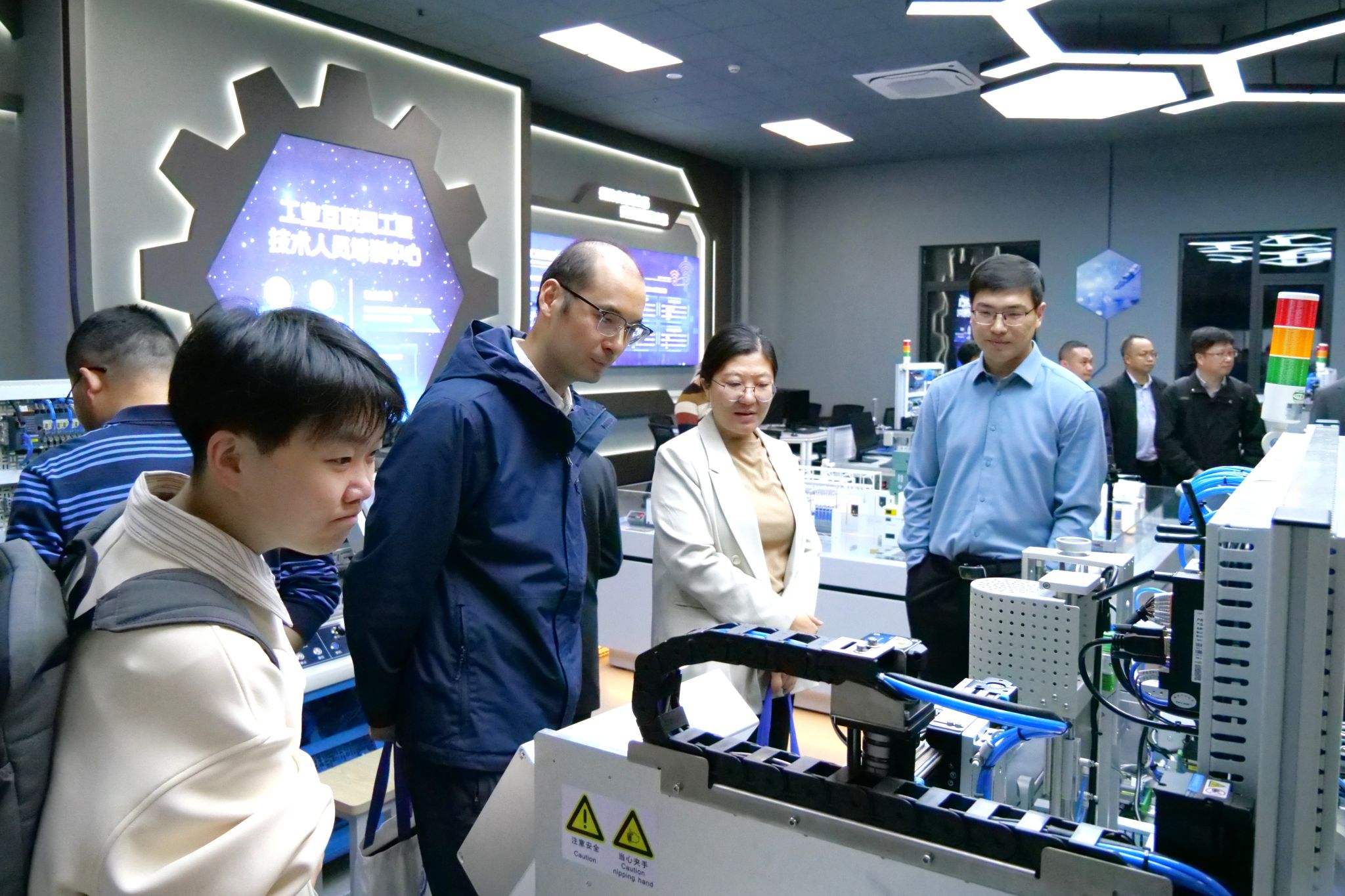 随后,企业代表、校友等共同参观数字技术工程师培训实训中心与学院新大楼。