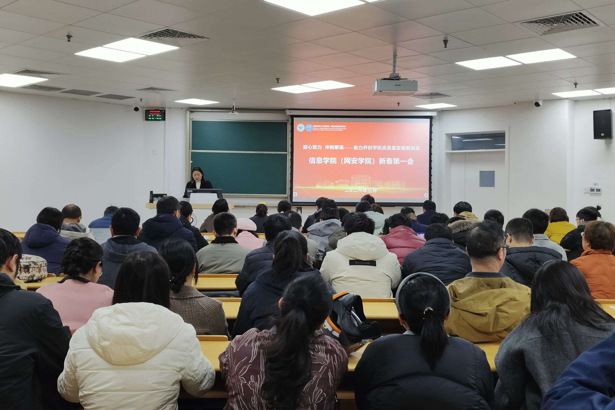 3月1日下午,信息科学与工程学院(网络空间安全学院)以“凝心聚力 冲刺攀高——奋力开创学院高质量发展新局面”为主题召开2026年新春第一会。学院党政领导班子成员、全体教职工参加会议。会议由学院党委书记苏丽辉主持。